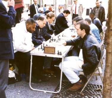 Steve playing chess in New York